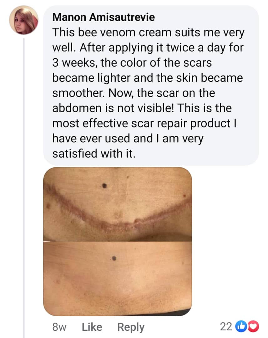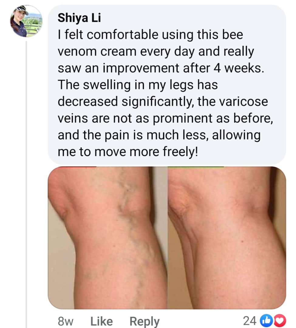 I am a teacher and have to stand for long hours every day, which took a toll on my body, especially my varicose veins. The swelling and discomfort were out of control. But then I tried these lovildsβ’ Bee Venom Cream, which is smooth, easily absorbed, and deeply moisturizes my skin with every use. After a week, I noticed that the swelling and discomfort of my varicose veins were significantly reduced, and my leg skin regained its former radiance. This is by far the most comfortable product I have ever purchased.”
