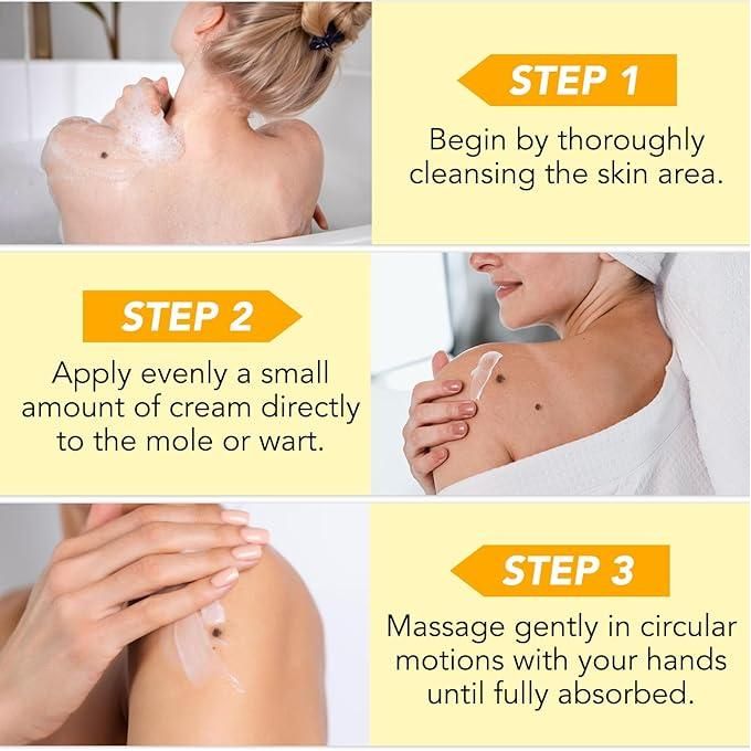 Apply once or twice daily until the mole, wart, or tag dries up and falls off β typically within 3β10 days depending on size.