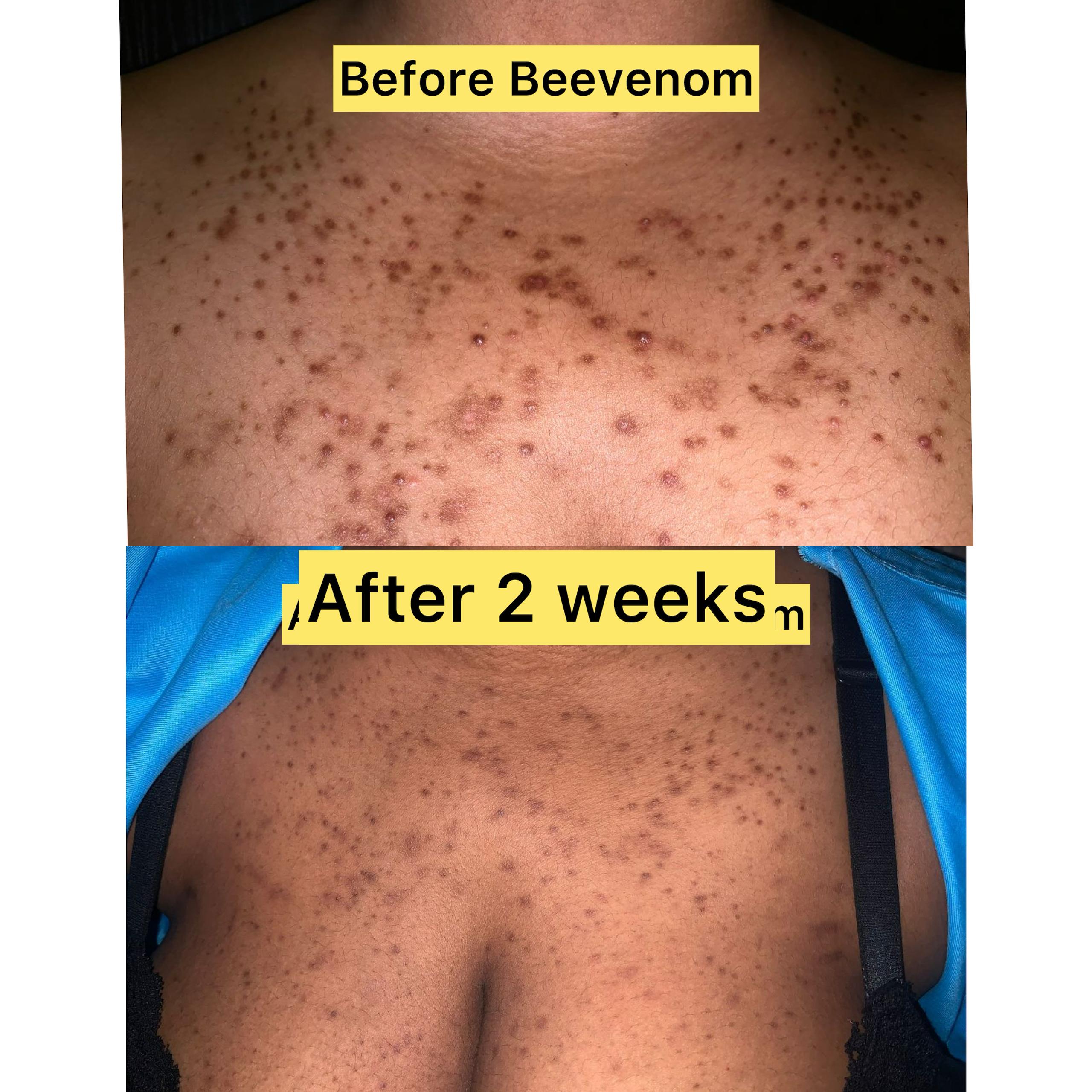 The active biological proteins found in bee venom, called bee venom peptides, were found to be effective in inhibiting the proliferation of keratinocytes within warts, and to rapidly kill the skin cells that have formed within the warts, causing them to gradually discolor, darken, and then fall off within 1 to 2 weeks. And make this the key treatment option for complete wart removal. June 2023 After more than 1 month of intensive research and extraction, I discovered that the bee venom produced by New Zealand bees rapidly fuses with human skin tissue. By activating and facilitating this process, it effectively inhibits the proliferation of keratinocytes within the wart and rapidly kills the skin cells that have already formed within the wart.