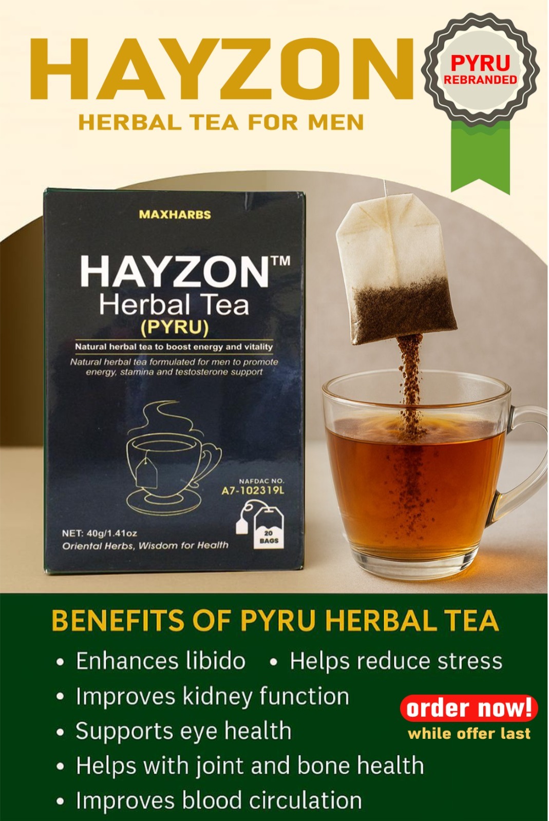 PYRU Energy Tea for Men is a scientifically formulated blend of oriental and herbal ingredients designed to revitalize male vitality from the inside out. Unlike synthetic supplements, PYRU taps into time-tested herbal traditions, offering a natural, side-effect-free solution to common male concerns such as fatigue, low libido, reduced testosterone, poor immune health, and diminished stamina.