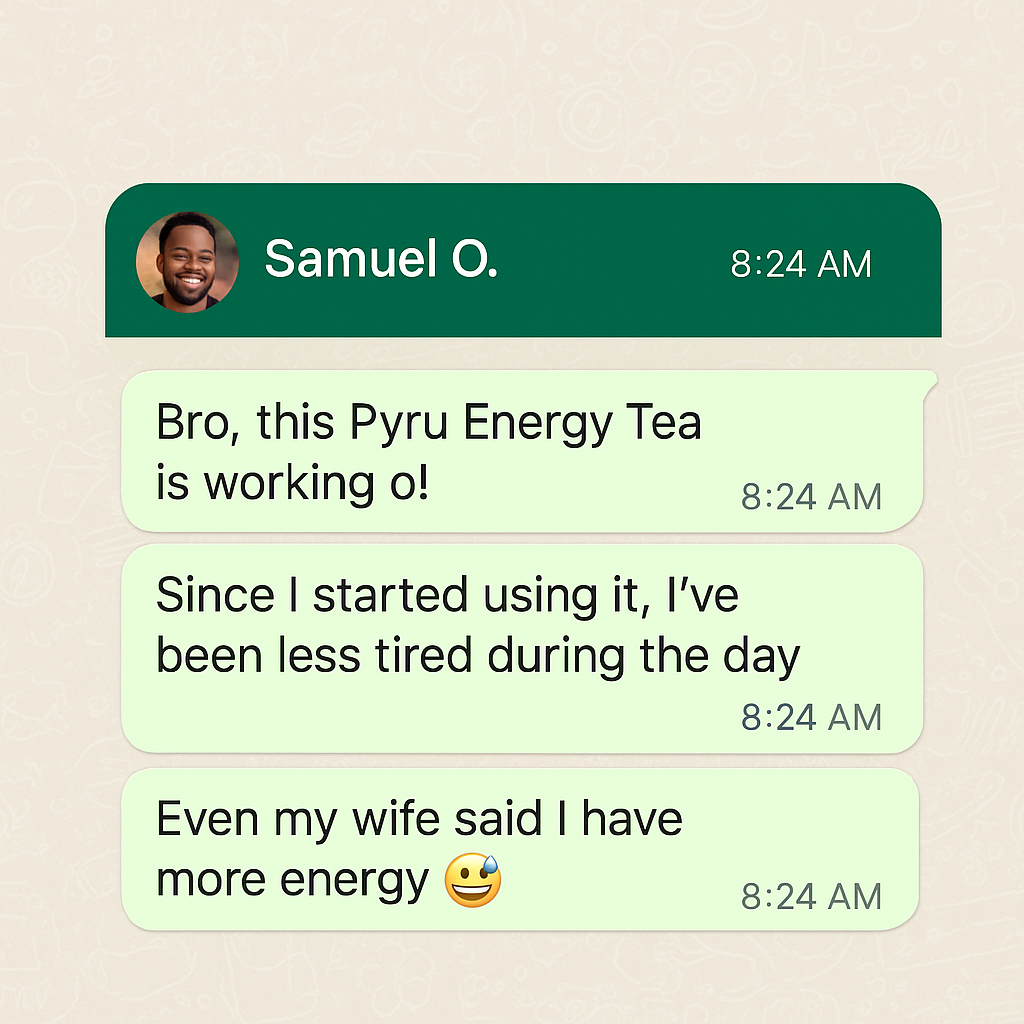 “I used to feel drained halfway through the day. Since I started drinking Pyru Energy Tea every morning, I feel more active and focused. Even my workouts have improved.”
