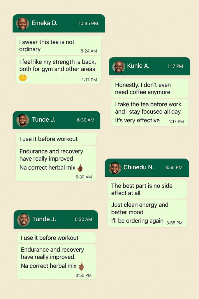These natural ingredients are not just trendy — they’re scientifically respected for their impact on men’s health. When combined in one potent herbal blend, they work synergistically to support energy, confidence, and performance — all in a simple daily tea.